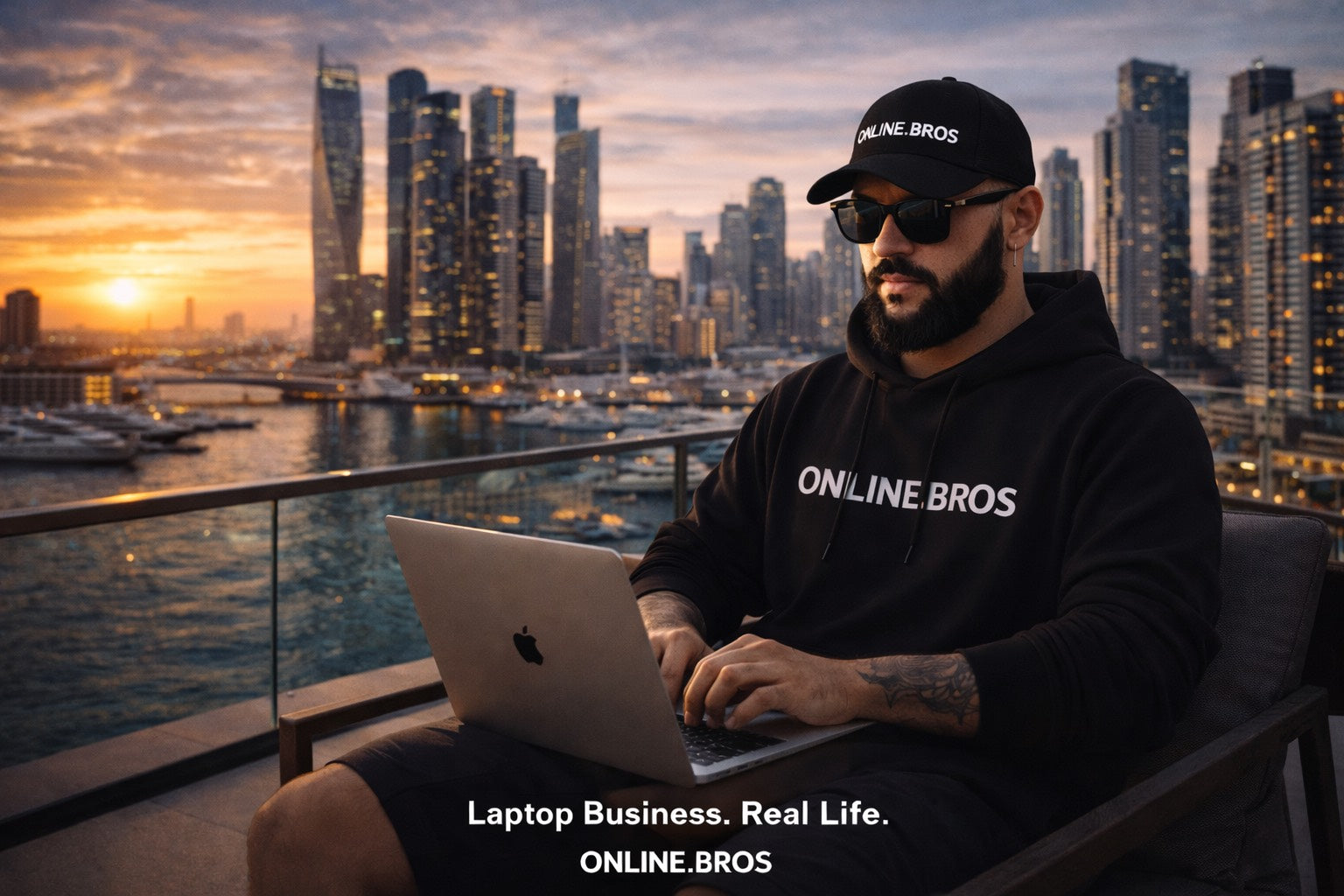 "Keine Abos, keine Tricks – einfach ein fertiges Business. Ich arbeite jetzt von Bali aus und verdiene mehr als vorher im Büro. Danke Online Bros!"